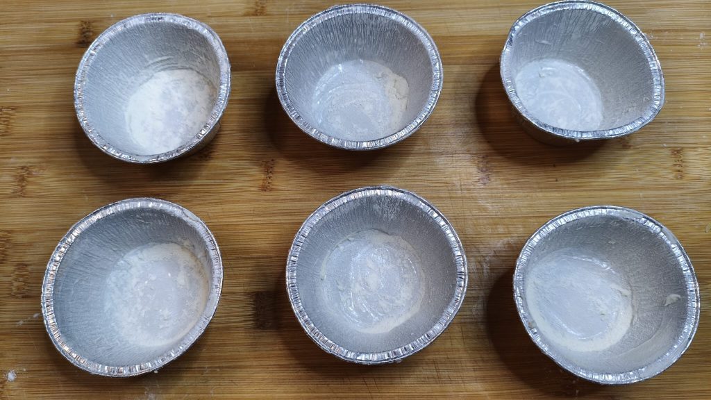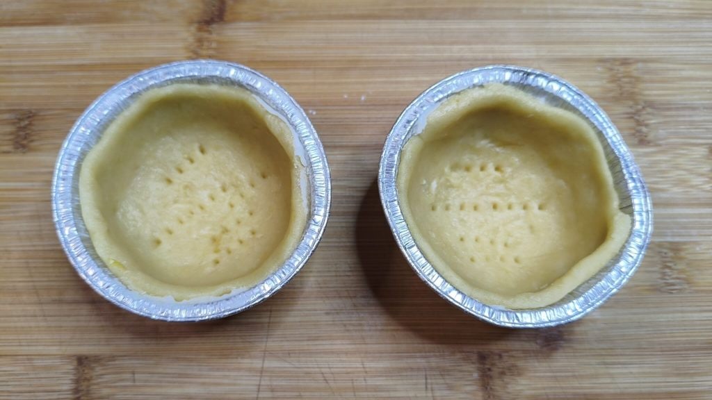• Mürbeteig hineinlegen und den Boden mit einer Gabel einstechen.