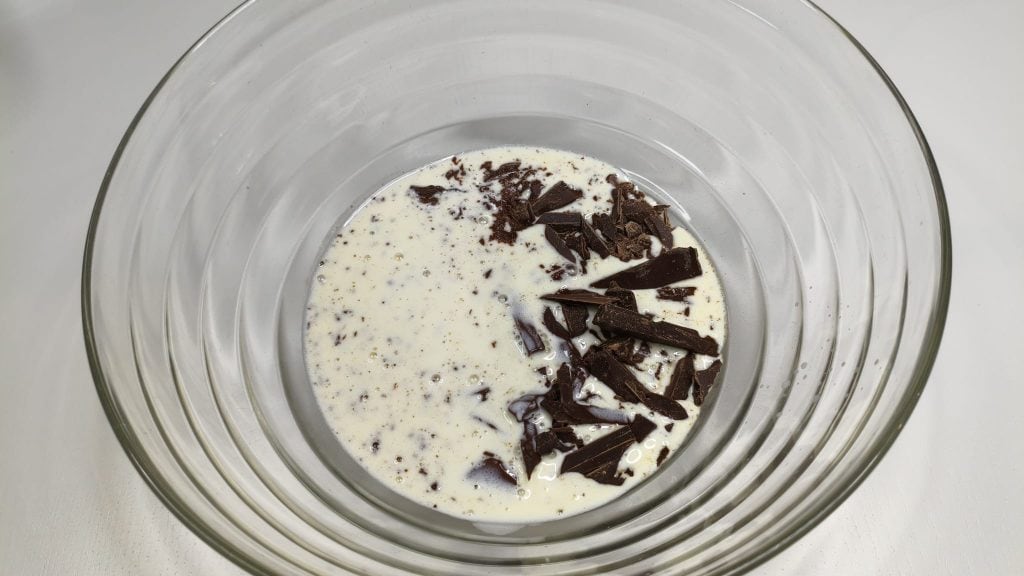 • Die Zartbitterschokolade hacken.