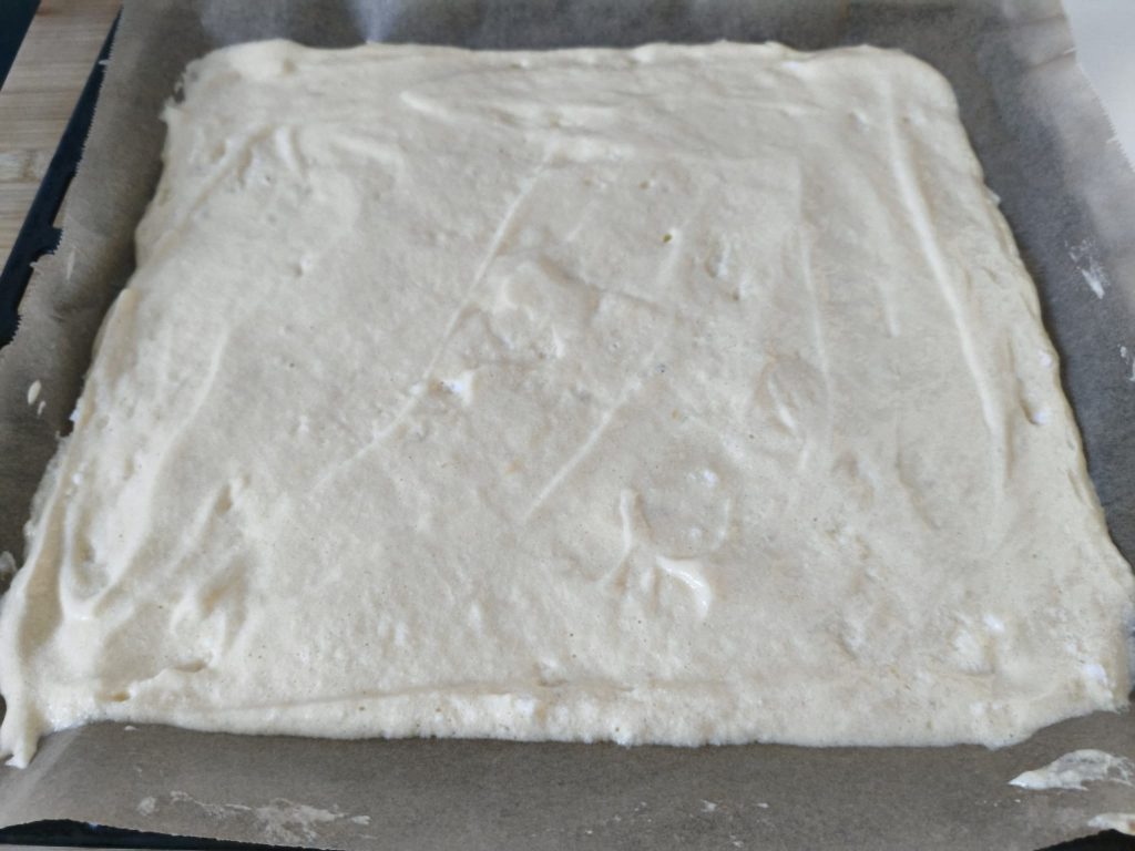 Die Basis ist ein luftiger Biskuitteig, elastisch und zart, den ich sofort gebacken und eingerollt habe, um die Form zu erhalten. Nach dem Abkühlen wird er zur perfekten Hülle für eine weiche und aromatische Creme.