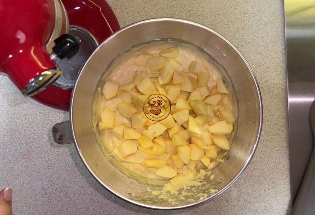 • Fügen Sie 1 in Stücke geschnittenen Apfel auf der Oberfläche hinzu und backen Sie bei 180° für etwa 40 Minuten.