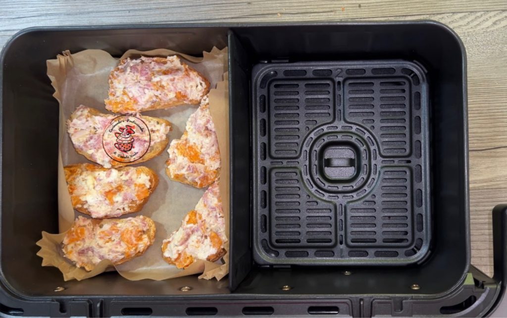 • Die Crostini in den Korb der Heißluftfritteuse legen und für 3 Minuten gratinieren.