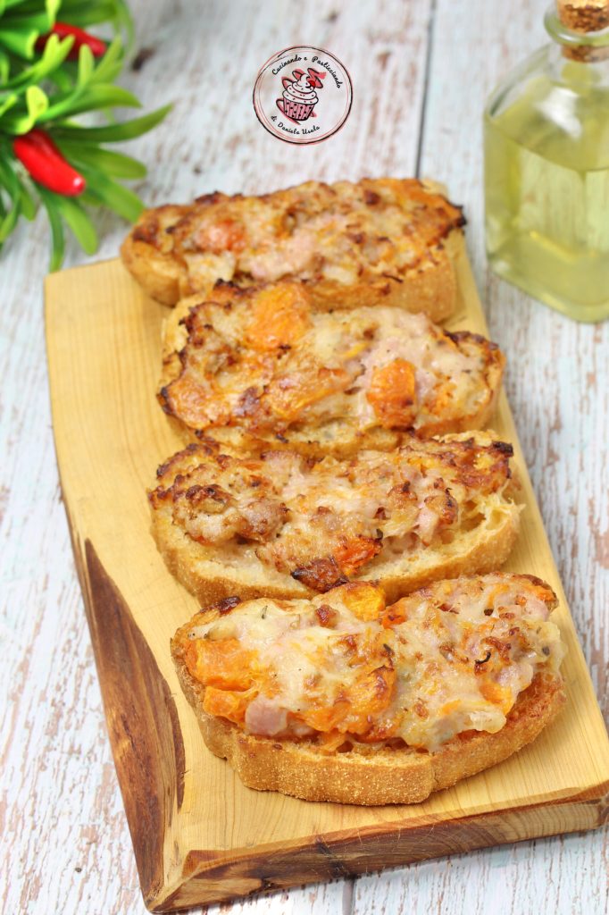 CROSTINI MIT KÜRBIS, WURST UND GORGONZOLA: herbstliche, leckere und schnelle Vorspeise