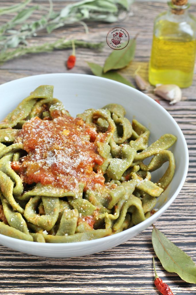 Heute habe ich zum Mittagessen frische grüne Eierpappardelle mit Wurstsauce zubereitet. Sehr lecker. Als Basis habe ich gefärbte frische Eierpasta mit Spinat verwendet. Sehr lecker und vor allem einfach und schnell zuzubereiten, sie können auch am Vortag zubereitet werden. Ich habe meinen Pasta Maker verwendet, aber wenn ihr geschickt seid, können sie auch von Hand oder mit einer Nudelmaschine gemacht werden.