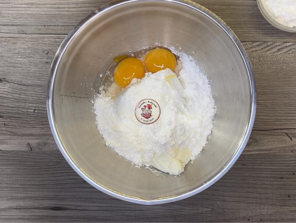 Ricotta, Eier und Puderzucker in eine Schüssel geben.