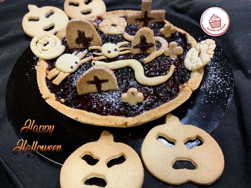 Wir haben alles für 10 Minuten bei 180° gebacken und nachdem es abgekühlt war, die Torte dekoriert. Wir versuchten einen Friedhof zu machen. Etwas leckerer aber.