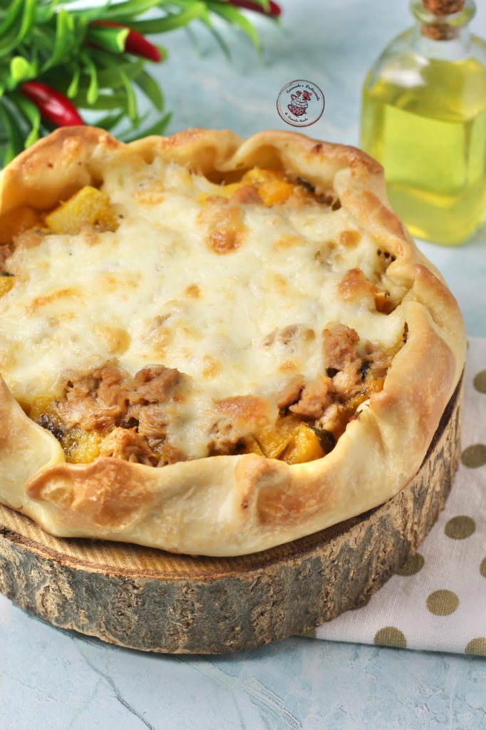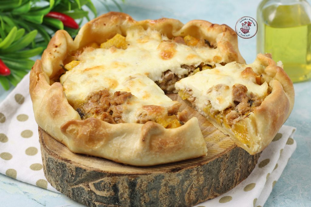 Heute das erste Herbstrezept, herzhafter Kürbis-Thunfisch-Kuchen. Perfekte Kombination, meiner Meinung nach. Super lecker!! Ich liebe Kürbis und Thunfisch, auf dem Blog habe ich auch andere Rezepte mit diesen zwei Zutaten gemacht. Meiner Meinung nach sind sie zusammen perfekt. Wenn wir dann noch Gorgonzola hinzufügen, umso besser. Ich habe den Teig zu Hause gemacht, ganz einfach, aber man kann problemlos eine Scheibe Blätter- oder Mürbeteig verwenden.