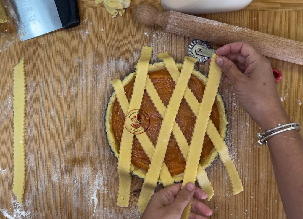 • Mit dem restlichen Teig die klassischen Streifen formen und auf den Kuchen legen. Bei 180°C für ca. 30 Minuten backen.