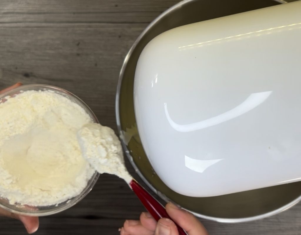 • Öl und Joghurt zur Mischung hinzufügen und weiterschlagen, dabei die Geschwindigkeit verringern.