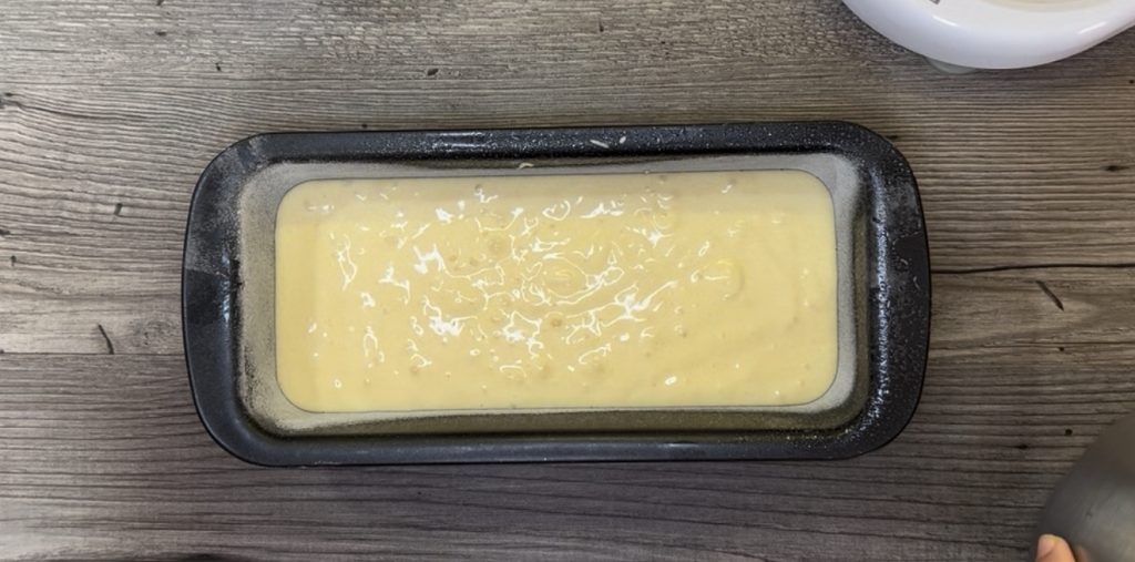• Die Hälfte der Mischung in eine gefettete und bemehlte Kastenform gießen.