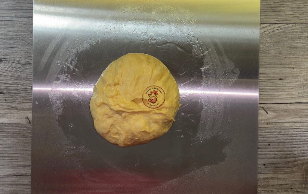 Die restlichen 45 g Manitoba-Mehl, Eigelb und Butter hinzufügen und kneten: Teigstufe /4 Min.