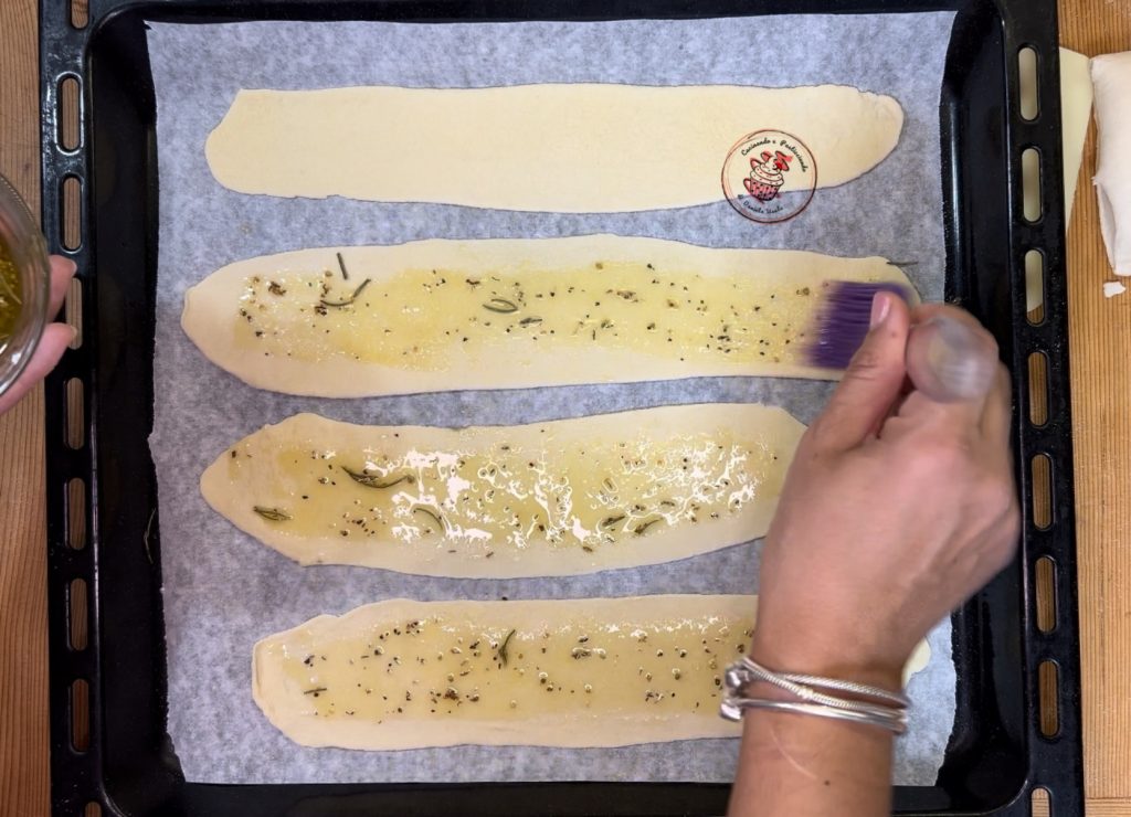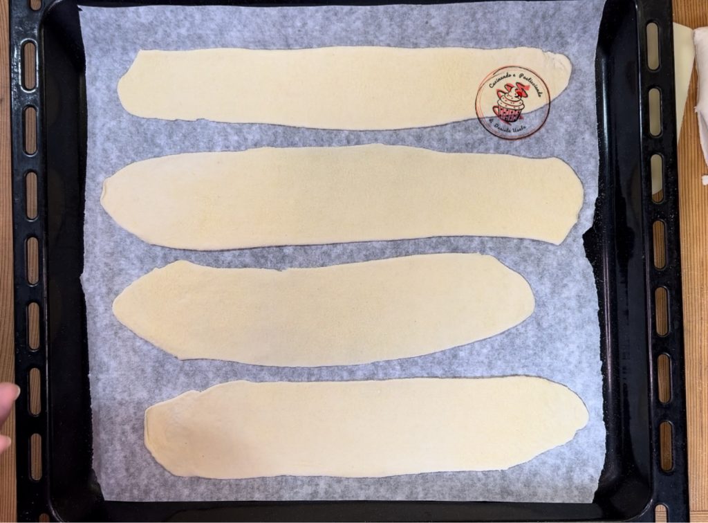 Legen Sie sie auf das mit Backpapier ausgelegte Backblech.