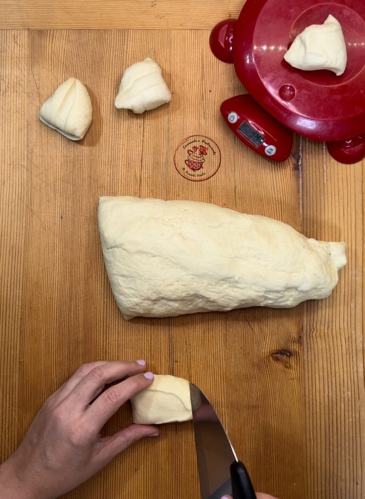 Kugeln formen und etwa 1 Stunde gehen lassen.
