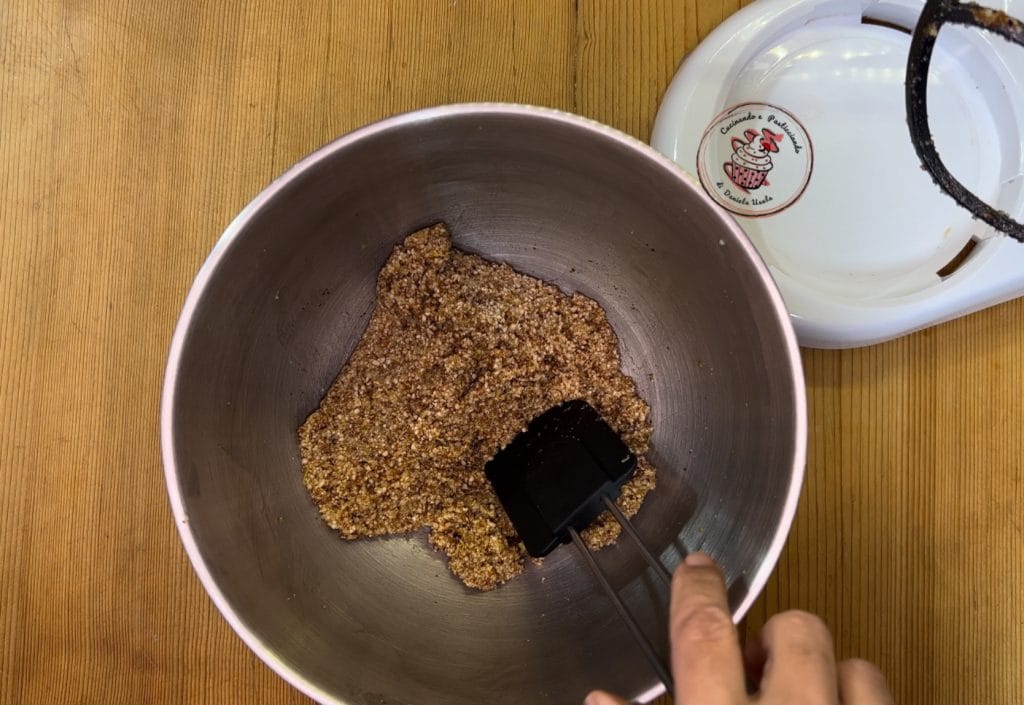 Die Mandeln für einige Sekunden im Mixer zerkleinern und in die Schüssel der Küchenmaschine geben.