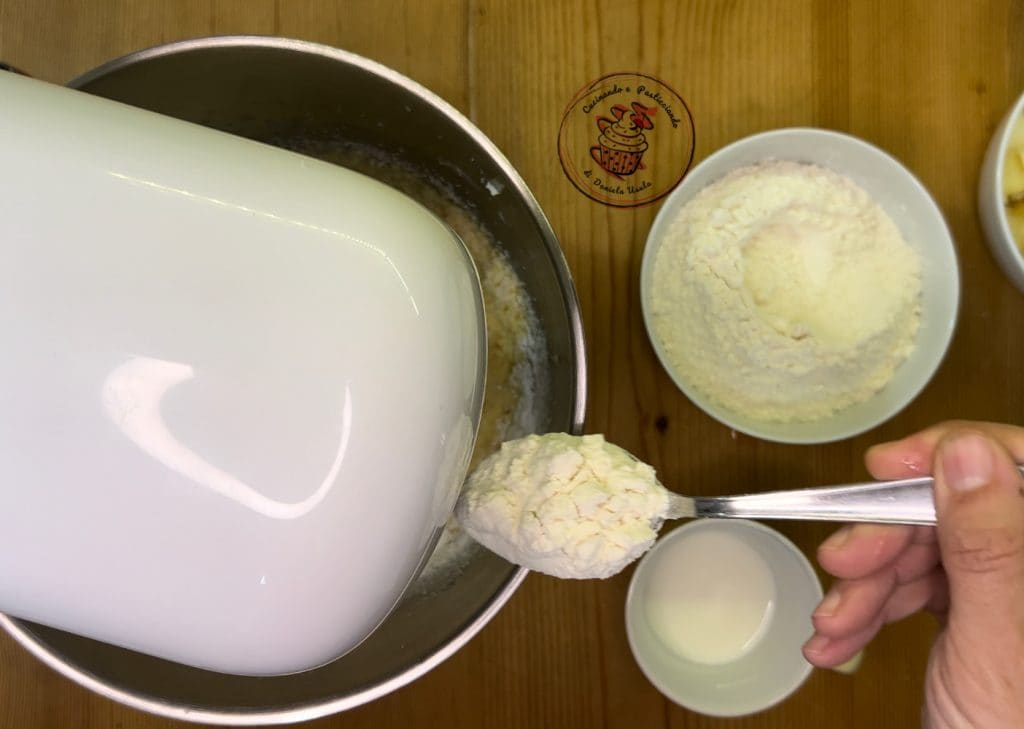 Abwechselnd zur Mehlmischung die Milch hinzufügen.