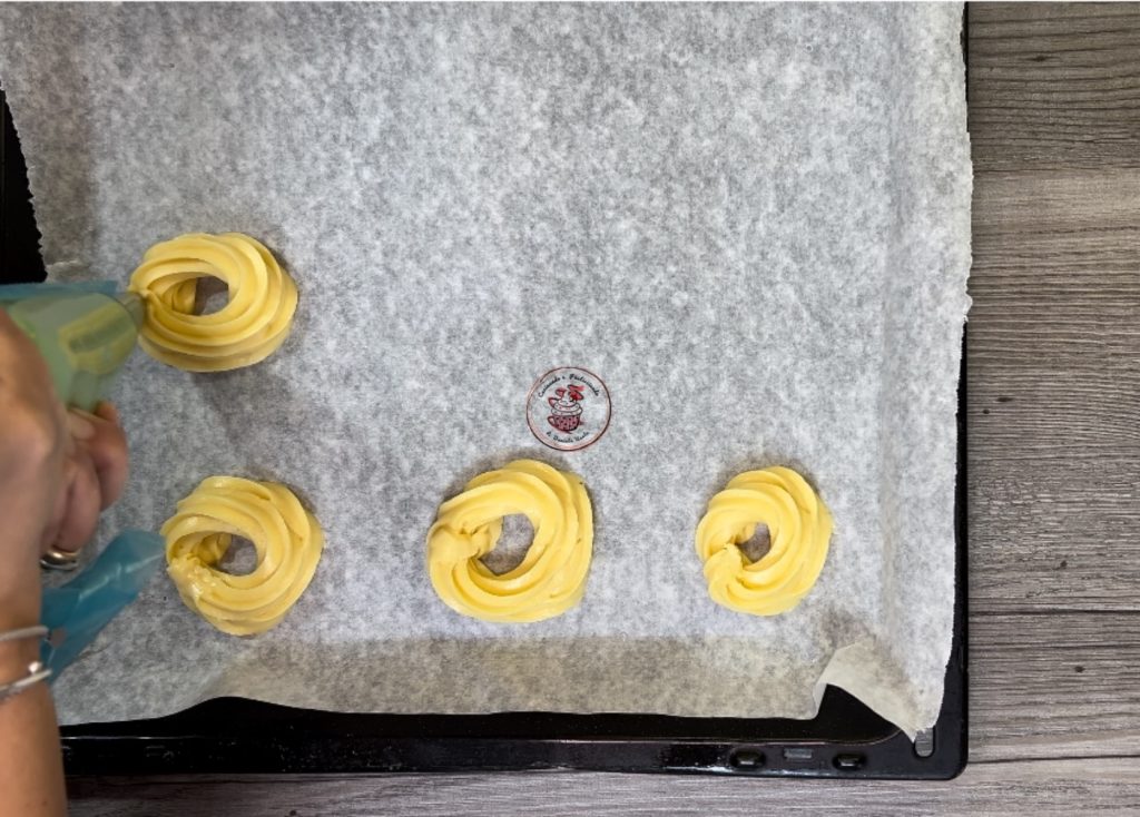 Das Backblech mit Backpapier auslegen und mit dem Spritzbeutel die Zeppole formen. Dann bei 200°C 30 Minuten backen, dann weitere 15/20 Minuten bei 180°C. Dann den Ofen ausschalten und die Zeppole für weitere 10 Minuten im ausgeschalteten Ofen lassen.