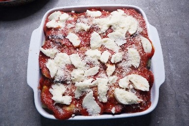 • Füge nun die zweite Schicht gegrillter Auberginen hinzu