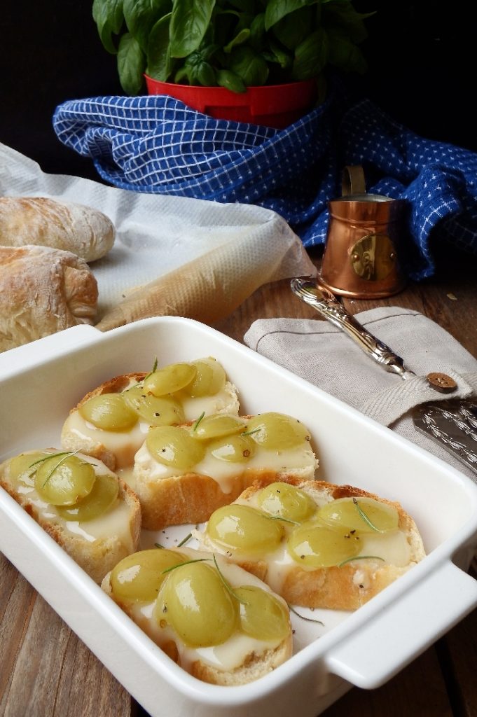 Die Crostini mit Trauben und Taleggio sind eine herbstliche Vorspeise, die sehr schnell zubereitet ist. Sie benötigen nur wenige Minuten, und der Geschmack ist wirklich hervorragend, ermöglicht durch die Kombination von Trauben mit Taleggio, zwei Zutaten, die zusammen wirklich eine einzigartige Geschmacksexplosion schaffen.