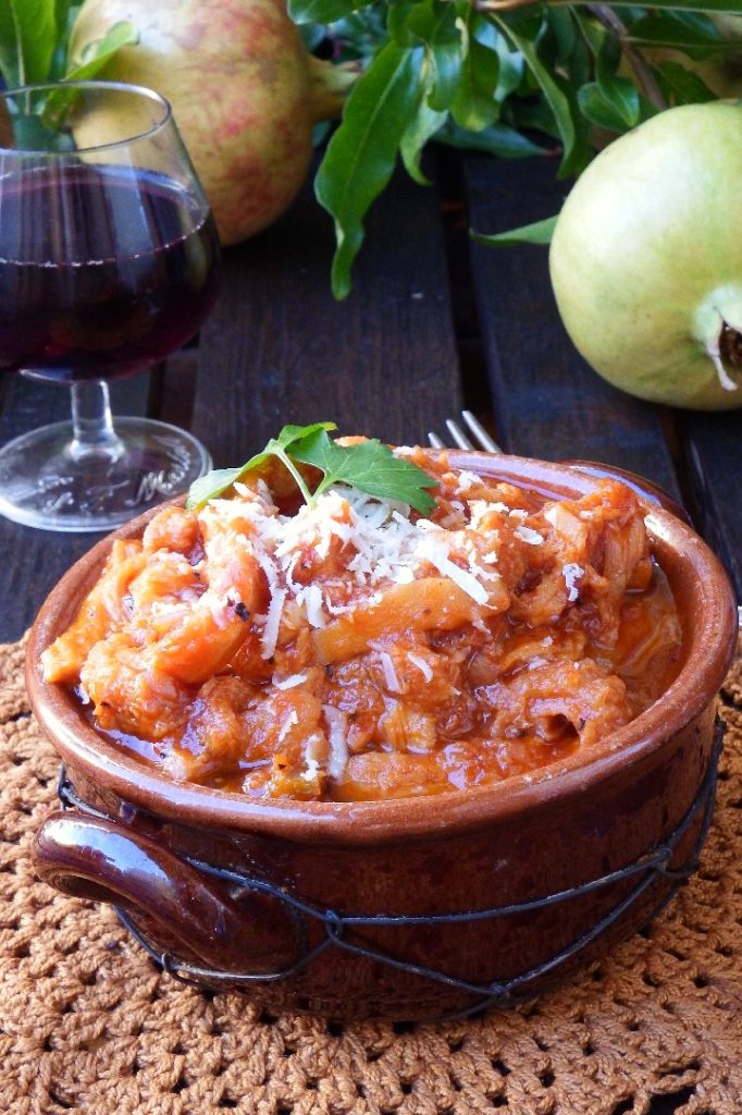 An diesem Punkt schalte ich den Kaldaun aus, nehme ihn am nächsten Tag wieder, und wenn ich sehe, dass er zu trocken ist, füge ich etwas Brühe hinzu und lasse ihn bei schwacher Hitze weitere 30 Minuten auf dem Herd. Dies ist ein Trick, den meine Mutter mir beigebracht hat, weil der Kaldaun immer am nächsten Tag besser schmeckt! Zum Schluss den geriebenen Parmesan hinzufügen und sofort servieren. Guten Appetit!