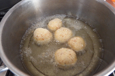 Forme mit den leicht eingeölten Händen walnussgroße Bällchen. Wälze jedes Bällchen im Paniermehl.