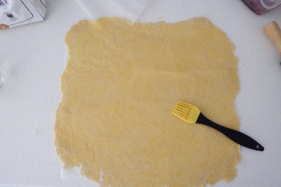 Entkerne die Kirschen und stelle sie beiseite. Rolle den Teig auf dem Backpapier aus, das du bemehlt hast