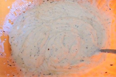In einer Schüssel die Ricotta mit der geschälten und gehackten Knoblauchzehe und den zerkleinerten Basilikumblättern geben, mit Salz und Pfeffer abschmecken.
