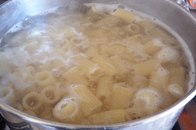Koche die Nudeln in reichlich gesalzenem Wasser