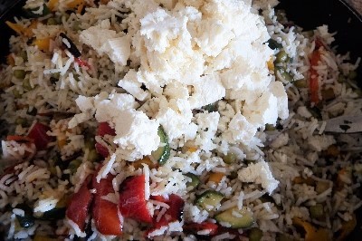 Der Reissalat mit Gemüse und Feta ist ein köstliches sommerliches Hauptgericht, reich an Vitaminen und schmackhaft, perfekt zum Mittagessen oder zum Mitnehmen während unserer Tage am Strand.