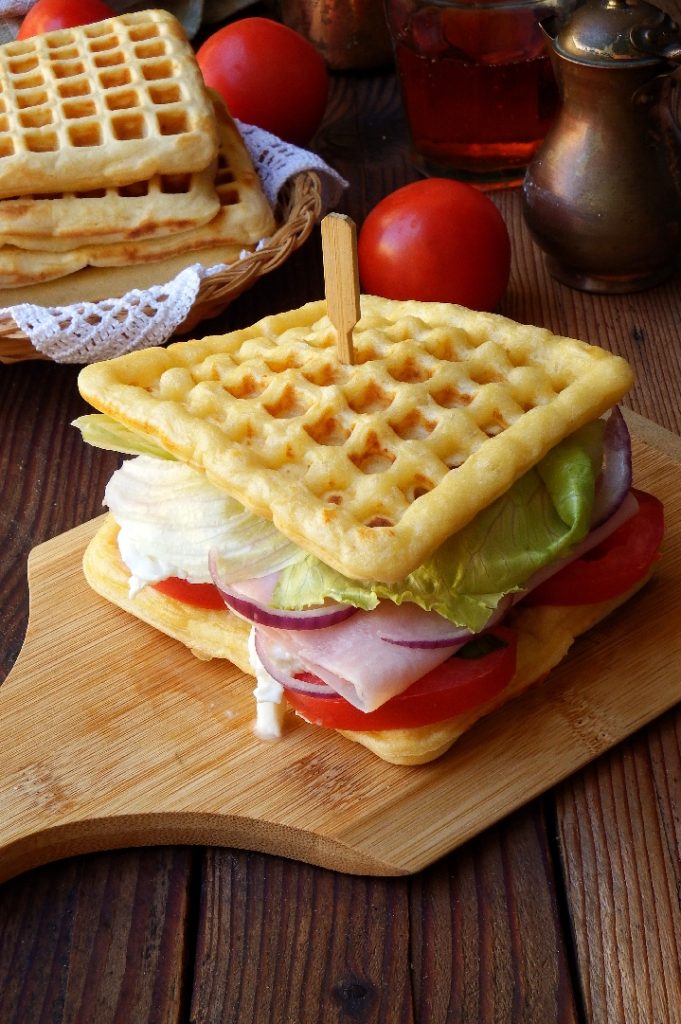 Füge schließlich die Blätter des Eisbergsalats hinzu, decke mit der anderen Waffel wie ein echtes Sandwich ab, und guten Appetit! Du findest das Video-Rezept HIER auf meinem TikTok-Profil @isaporidicasa