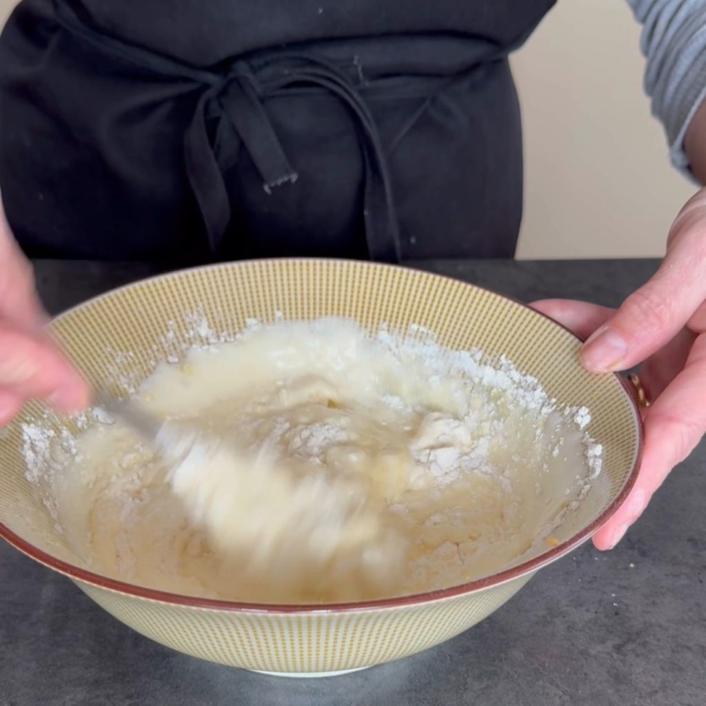 lasst es mit einer Gabel unterheben und bewegt euch dabei von oben nach unten, damit die Mischung nicht zusammenfällt.