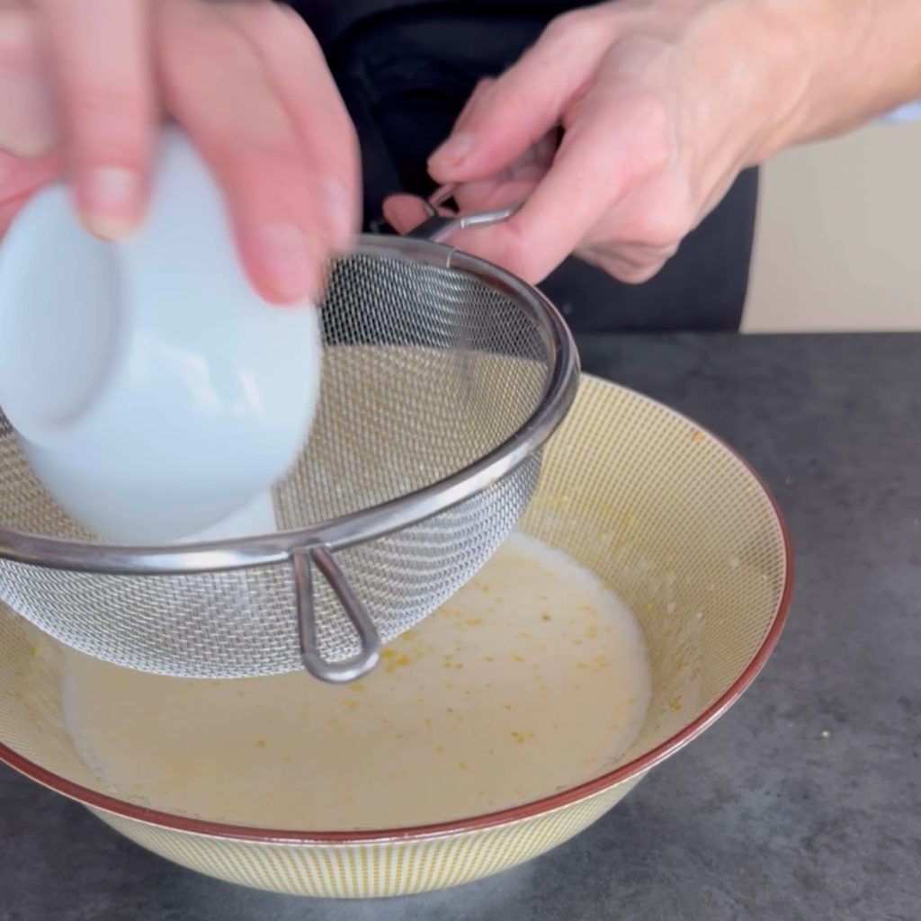 und das ebenfalls gesiebte Mehl,