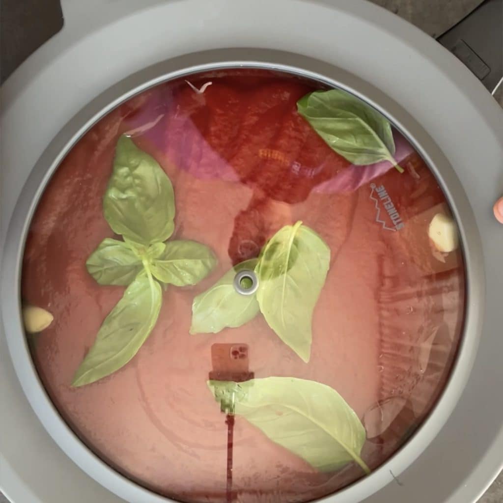 Fügen Sie zerkleinerte Basilikumblätter hinzu.