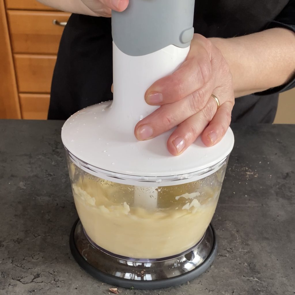mischen Sie, bis Sie ein glattes Püree erhalten.