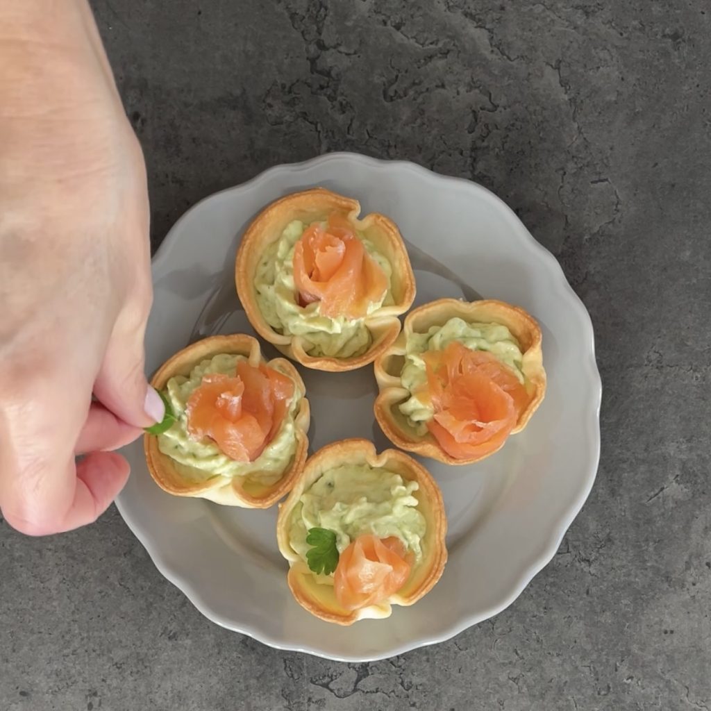 BLÄTTERTEIG-KÖRBCHEN MIT LACHS UND AVOCADO