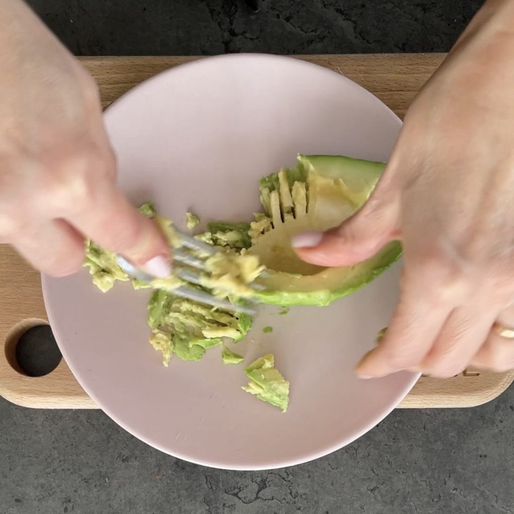 • Legen Sie sie auf einen Teller und zerdrücken Sie sie mit einer Gabel.