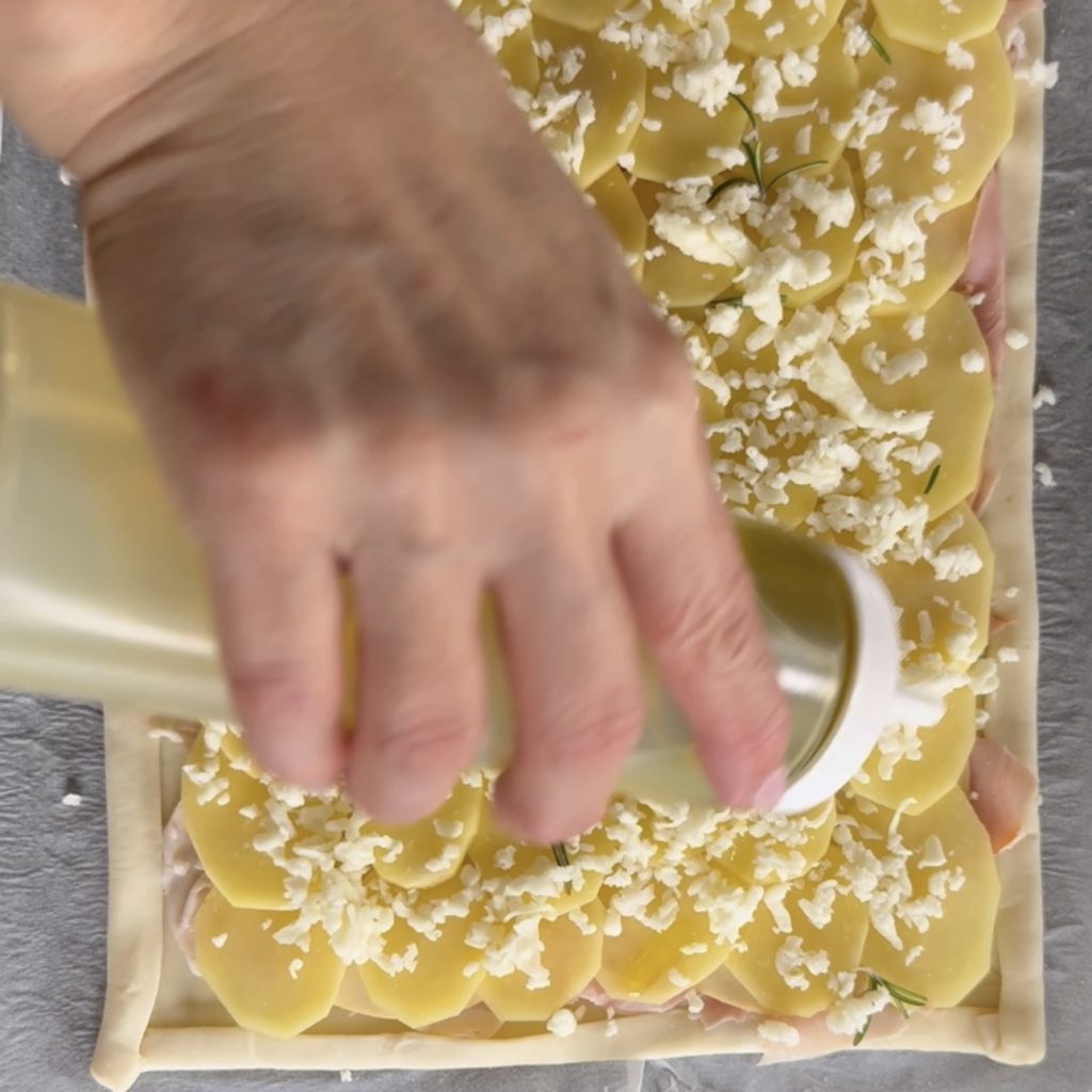 Zutaten für die Zubereitung des Blätterteigs mit Kartoffelscheiben