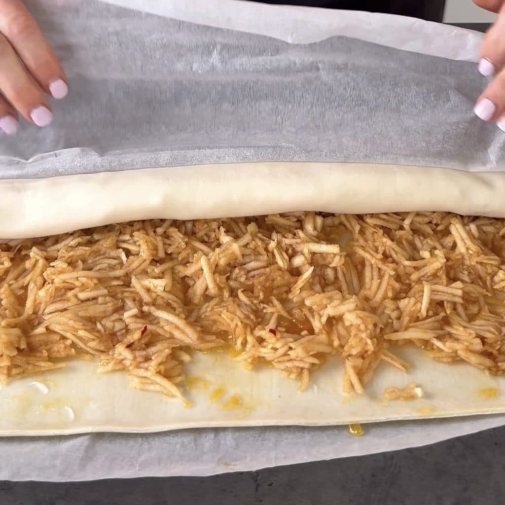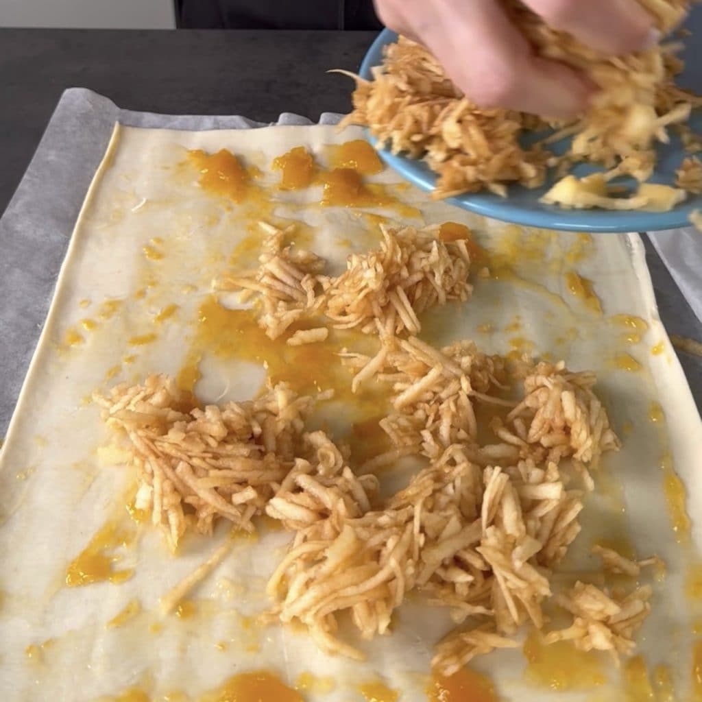 Wie man die Blätterteig-Schnecken mit geriebener Apfel zubereitet