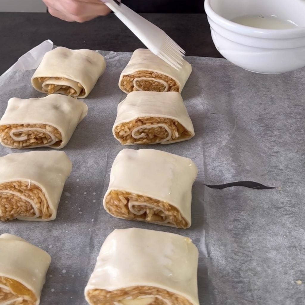Legen Sie die Schnecken auf das Backblech, bestreichen Sie sie mit Milch,