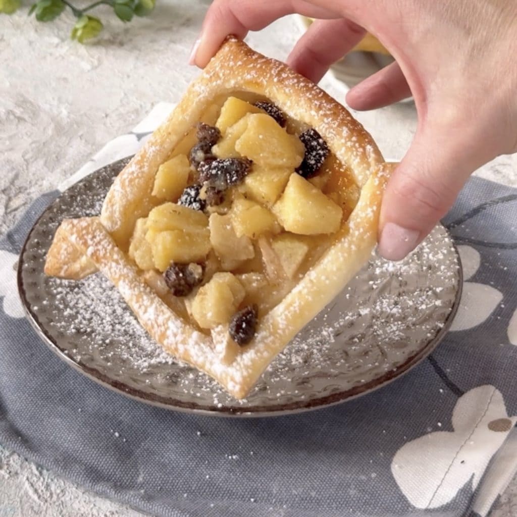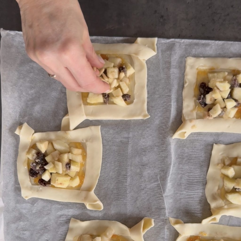 Wie man den Blätterteigkorb mit Äpfeln und Rosinen zubereitet