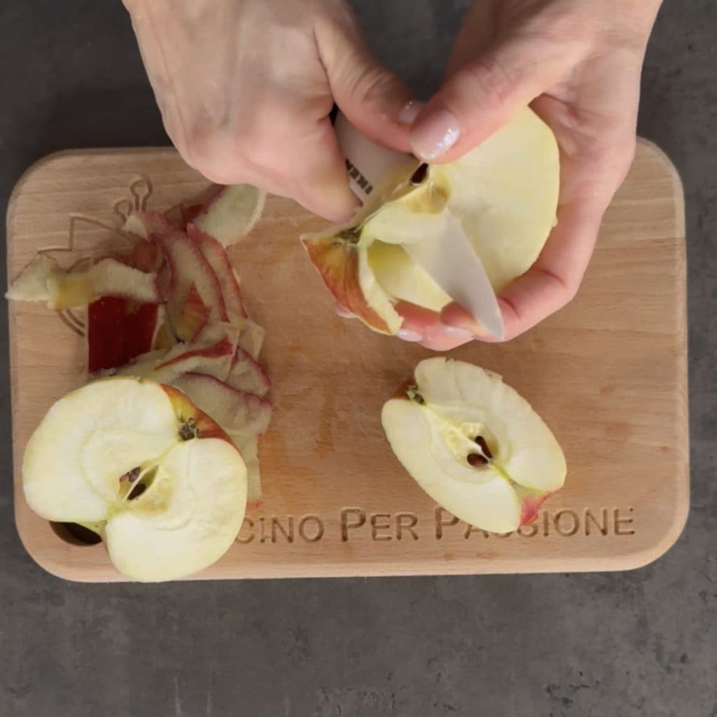 Schälen Sie den Apfel,