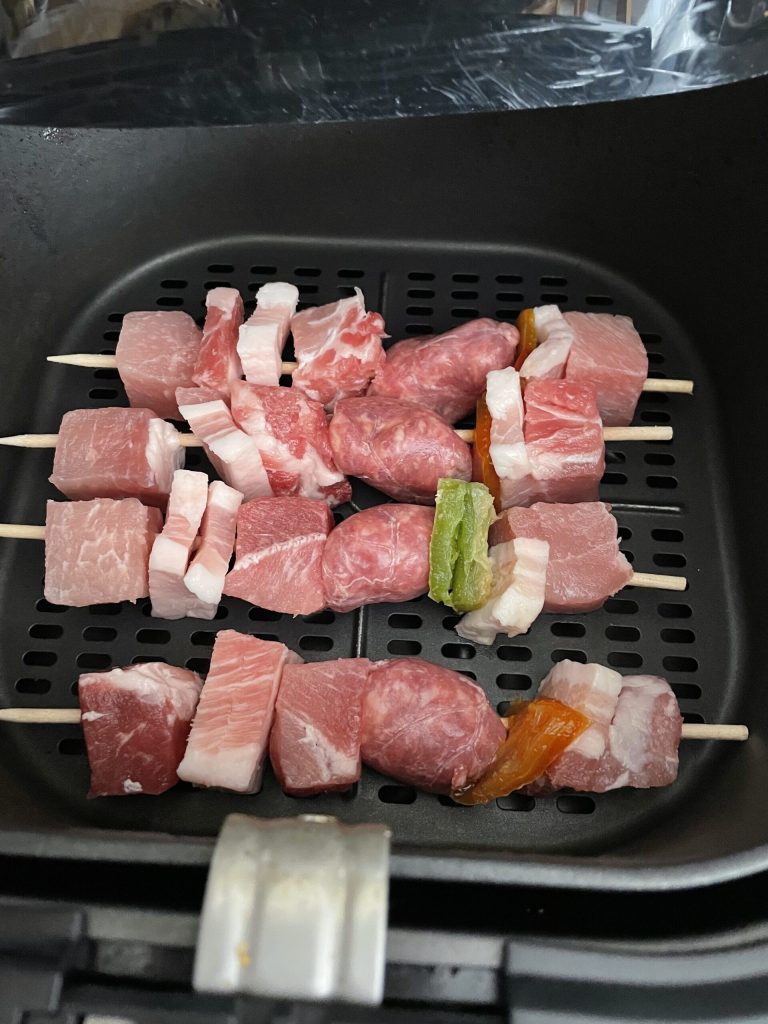 Wie man die Fleischspieße in der Heißluftfritteuse zubereitet