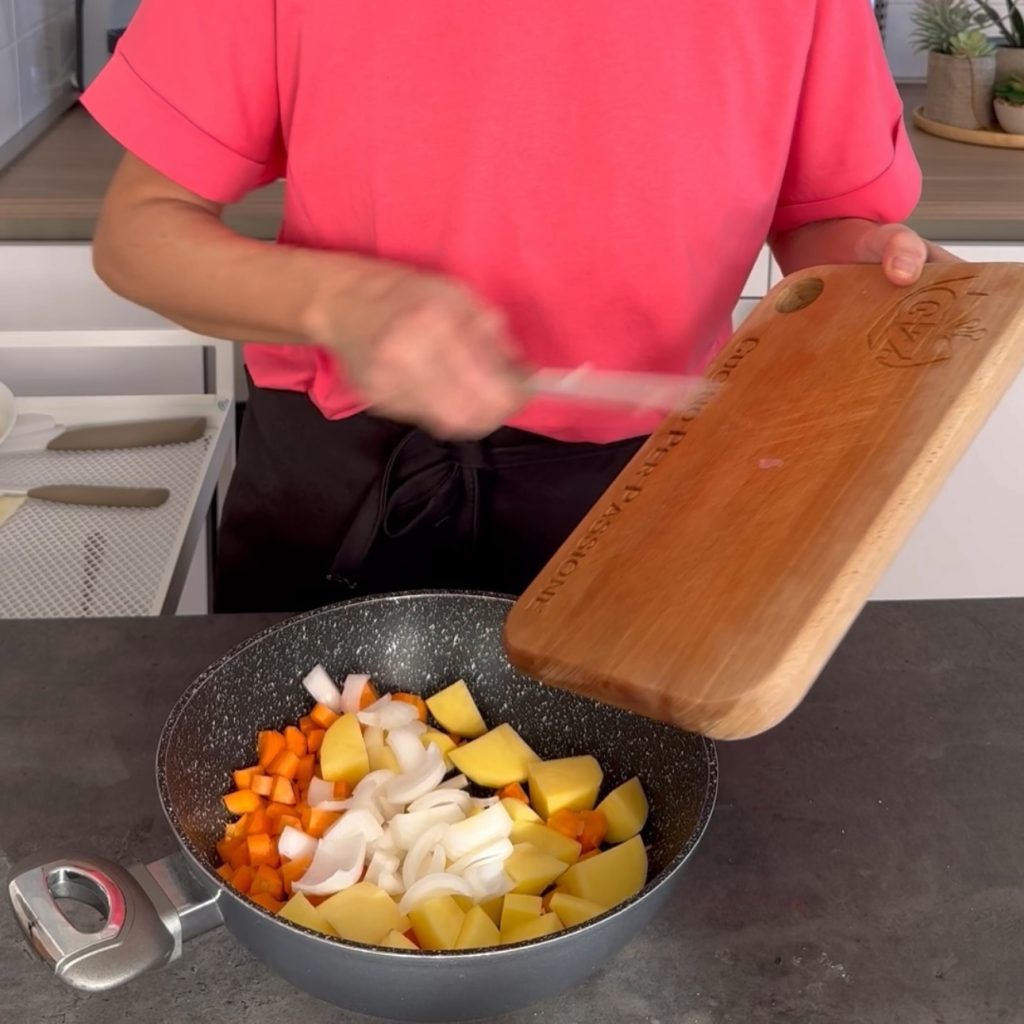 • Wenn sie gut gebräunt und mit einer Kruste bedeckt sind, geben Sie sie in die Pfanne mit dem Gemüse,