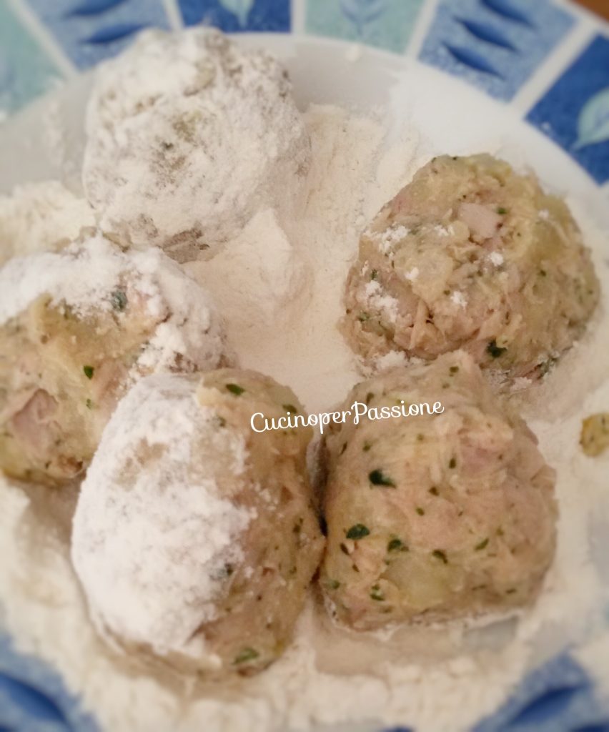 Formen Sie Frikadellen und wälzen Sie sie in Reismehl.