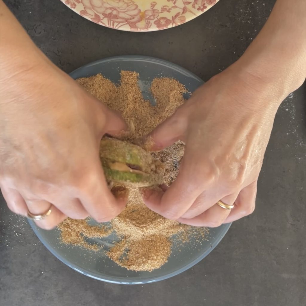 • und im Paniermehl, dank dieser doppelten Panade erhalten Sie außen knusprige und innen weiche Zucchini. Achten Sie darauf, die Panade gut zu machen, damit die Zucchini gut verschlossen sind und der Käse nicht austritt.