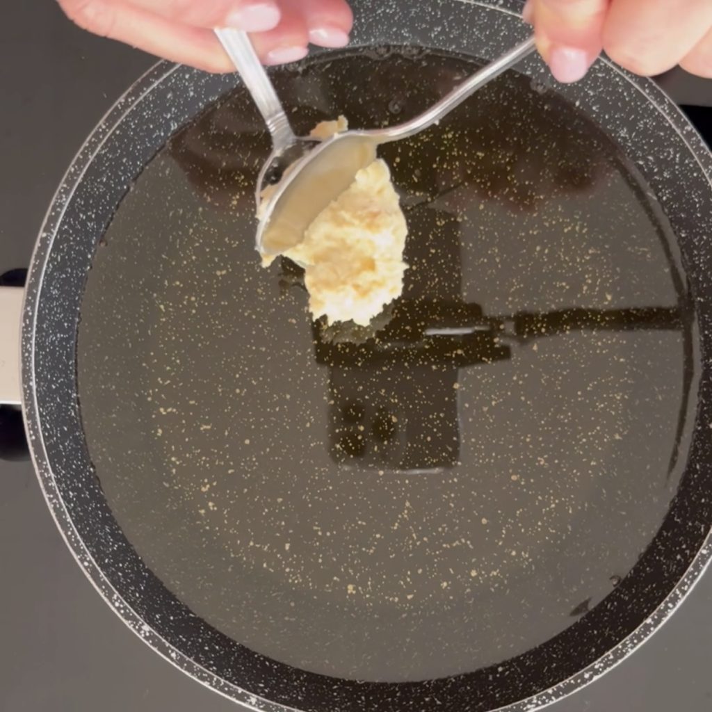 Wenn die Pfannkuchen schön goldbraun sind, nehmen Sie sie aus dem Öl und