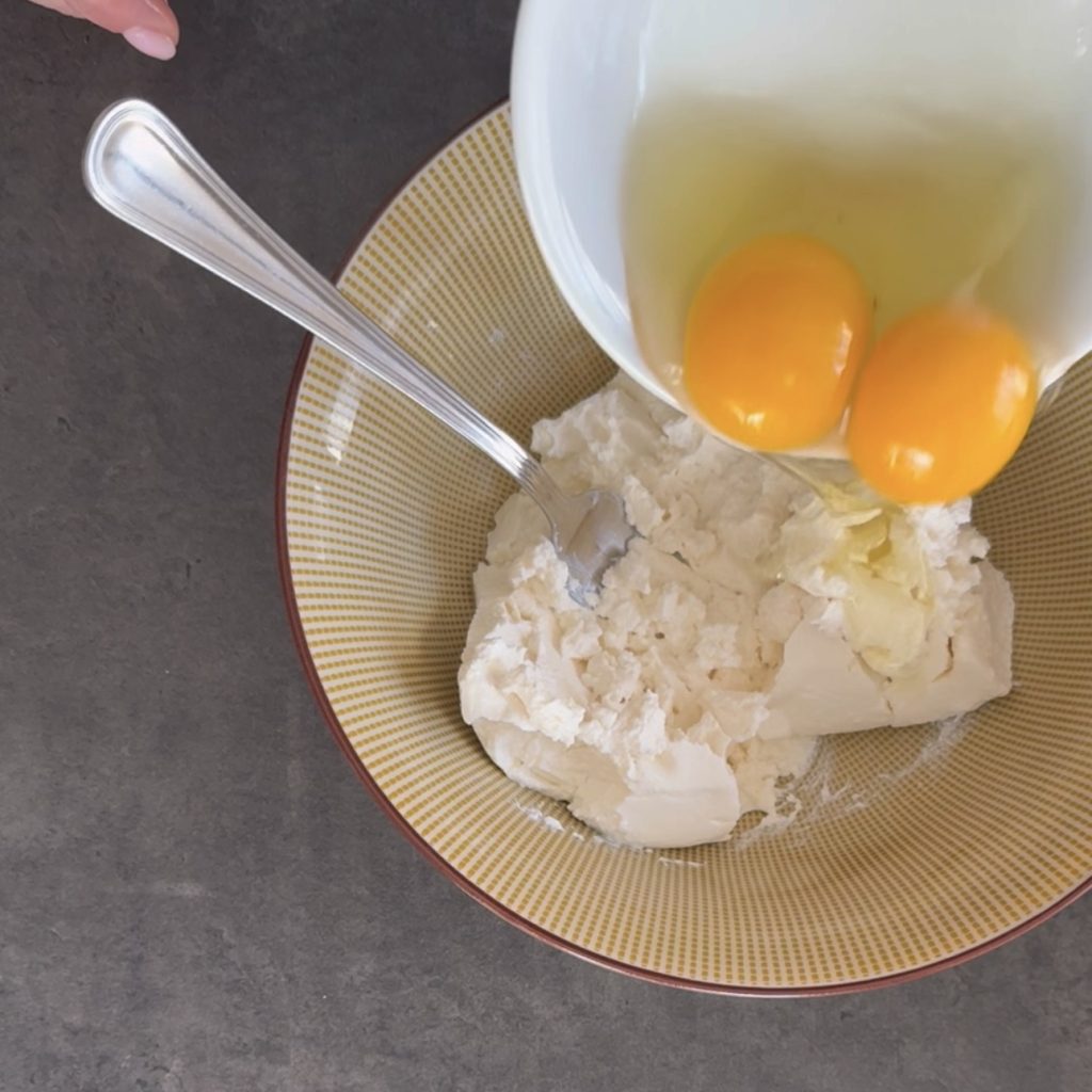 Geben Sie den Ricotta in die Schüssel und arbeiten Sie ihn mit einer Gabel.