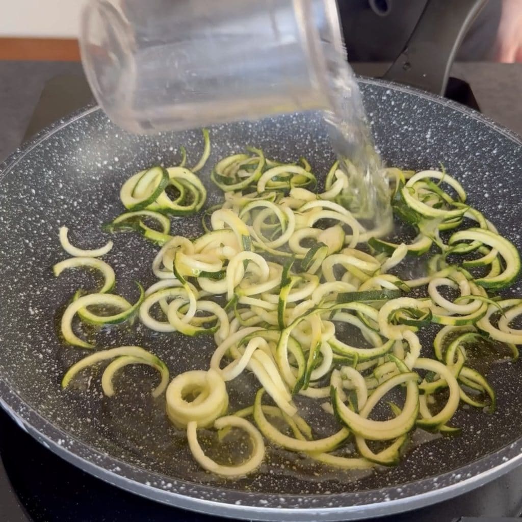 Wenn der Wein verdampft ist, fügen Sie die zuvor gekochten Zucchini hinzu,