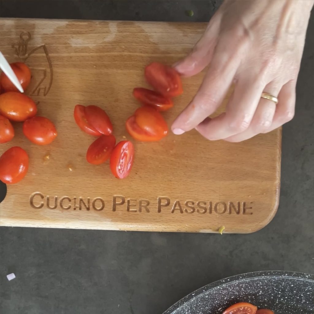 Wenn die Gemüse gar sind, vom Herd nehmen und abkühlen lassen, in der Zwischenzeit die Eier in eine Schüssel geben, einen Schuss extra natives Olivenöl hinzufügen,