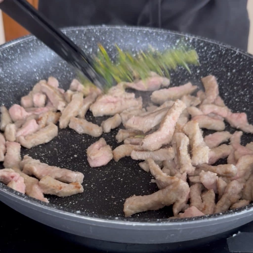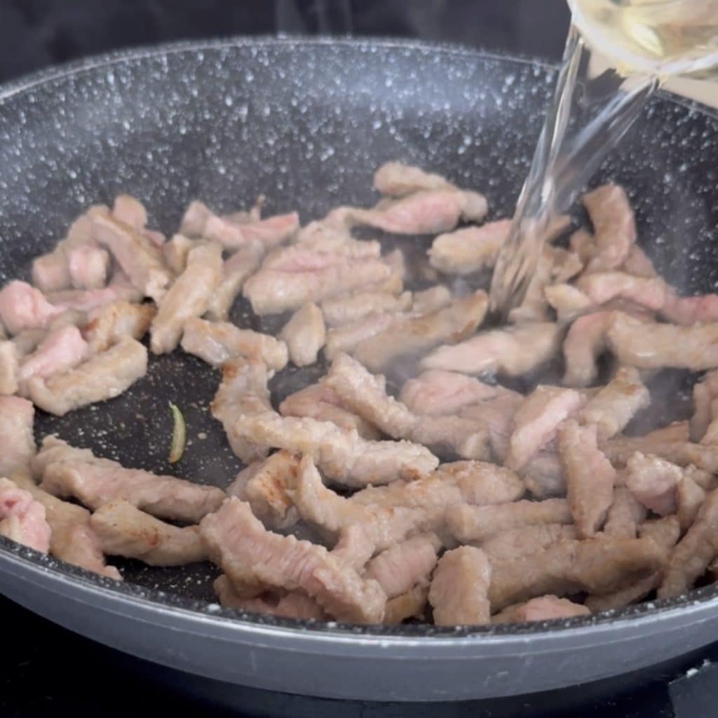 • dann die bemehlten Kalbsstreifen hinzufügen,