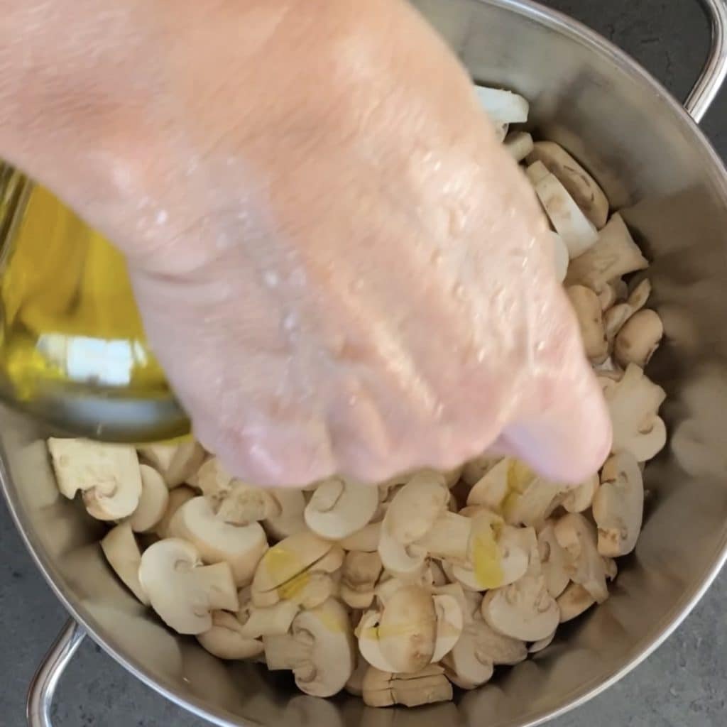 • Wenn der Alkohol verdampft ist, die Pilze dazugeben,