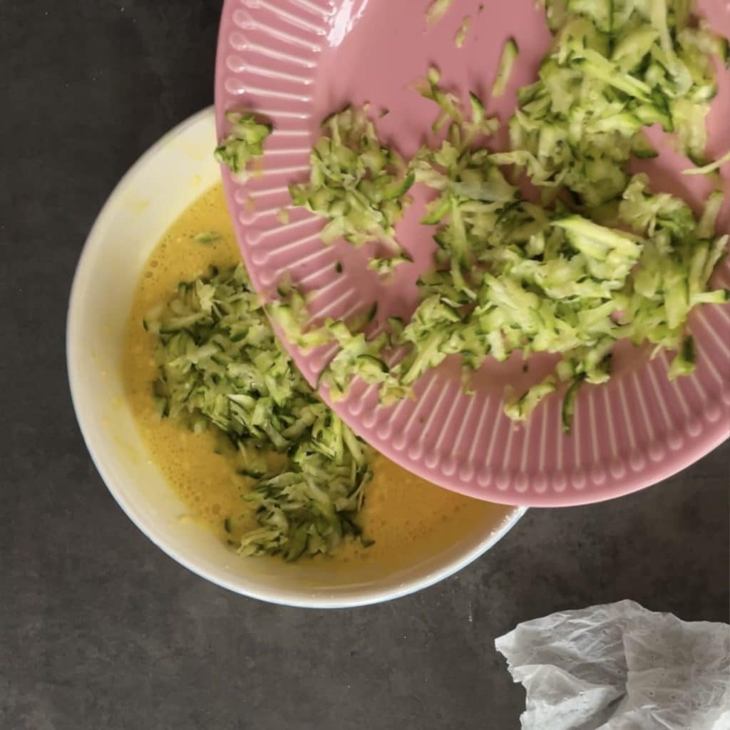 Fügen Sie die geriebene und ausgedrückte Zucchini hinzu